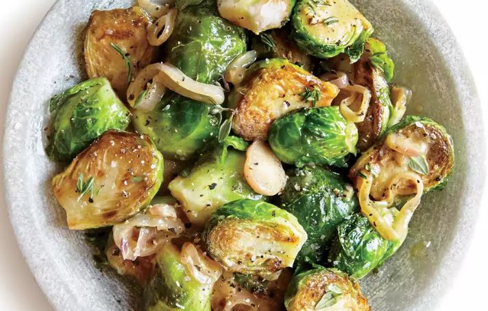 BRAISED BRUSSELS SPROUTS WITH MUSTARD HERB BUTTER