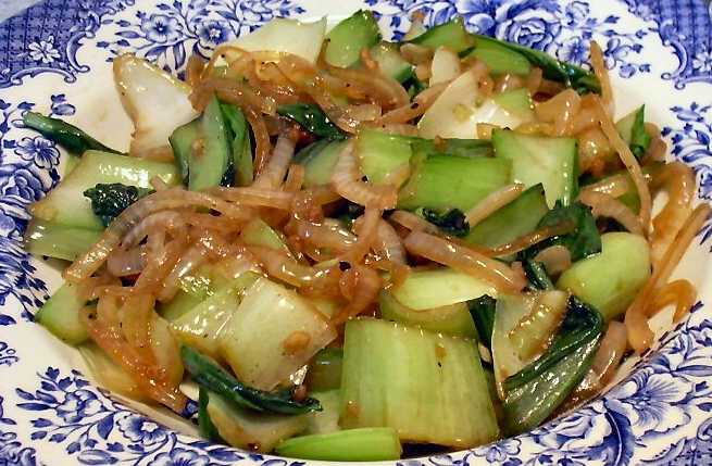 STIR FRIED BOK CHOY WITH SOY SAUCE AND GINGER