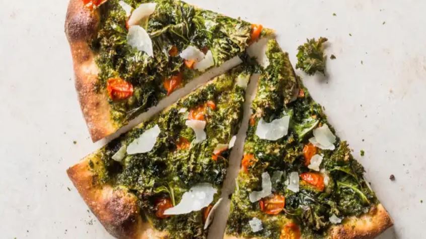 WHOLE WHEAT PIZZA WITH KALE AND SUNFLOWER SEED PESTO