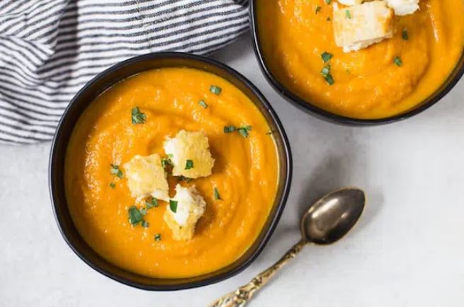 Purée Of Sweet Potato And Ginger Soup With Apple-Mint Raita