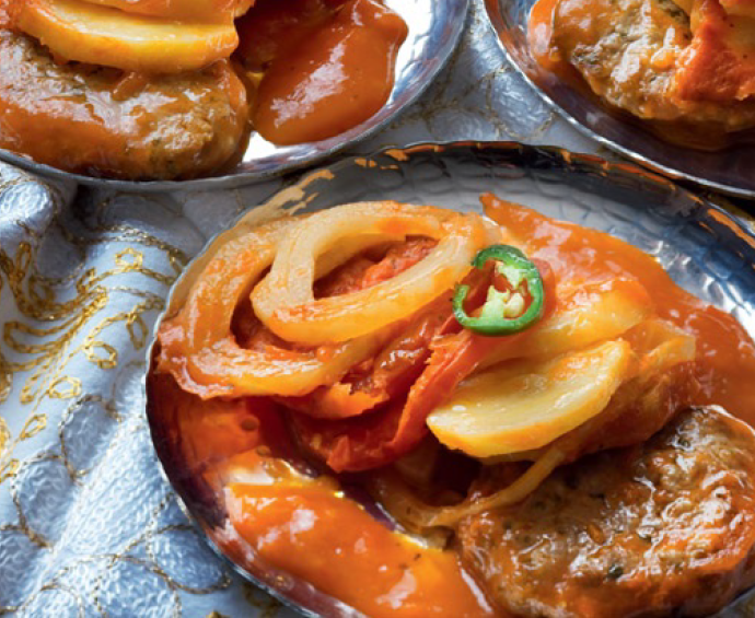Pine nuts often appear in Lebanese cuisine. Here they end up in a vegetarian version of kibbeh. SERVES 4 INGREDIENTS 3 cups (420 g) fine bulgur 2½ cups (540 g) olive oil 1½ cups (153 g) graham flour Salt and pepper 6½ tablespoons dried mint 1½ cups (225 g) grated yellow onion 2 cups […]