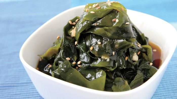 The dried sea plant miyeok (called wakame in Japan) is papery, dry, and black in the bag, but it turns deep green and soft when soaked in water. This salad, which is sweet-and-sour, juicy, and garlicky, is a good appetizer choice if you want to add a Korean dish to a Western-style meal. If you […]