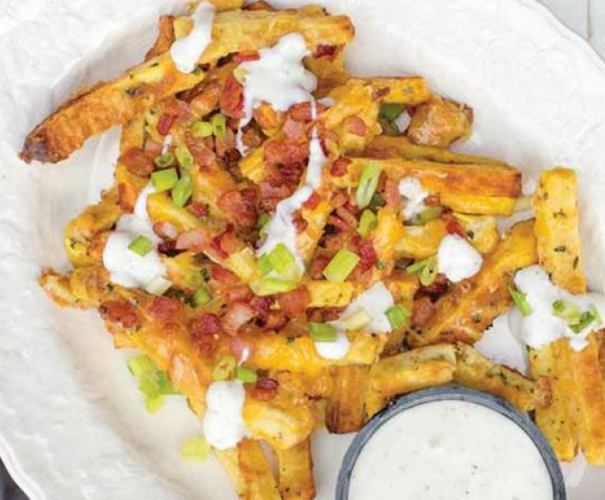 prep time: 5 minutes, plus 1 hour to chill cook time: 4 minutes yield: 8 servings INGREDIENTS 1 (8-ounce) package cream cheese, softened ½ cup sour cream 1 cup crumbled blue cheese or shredded sharp cheddar cheese ½ cup diced tomatoes (fresh or canned) ¼ teaspoon fine sea salt 3 strips bacon, finely diced […]