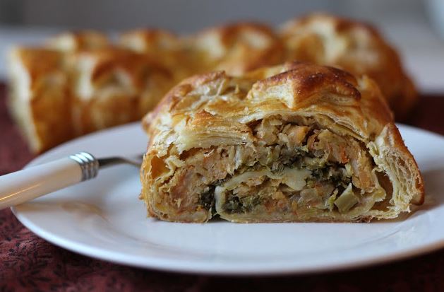 Winter Vegetable Strudel on a Bed of Greens