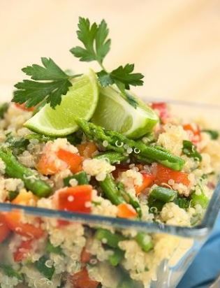Serves: 2 INGREDIENTS: 1 cup cooked quinoa mixed with 1 tbsp. sunflower seeds 1 cup sliced red peppers 1 cup grilled asparagus Garnish with lime and parsley DRESSING: 1 tbsp. olive oil or avocado oil 1 tbsp. fresh lemon juice pinch of black pepper pinch of sea salt INSTRUCTIONS: Mix all ingredients […]