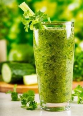 - In a blender, combine the chopped kale, avocado, cucumber, and celery.