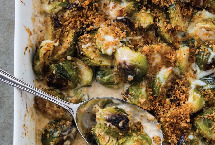 WHY THIS RECIPE WORKS In developing a Brussels sprout gratin, we wanted to make a dish that highlighted the earthy flavor of Brussels sprouts. Preroasting the sprouts made them rich and nutty, not cabbage-y. We made a quick, creamy Mornay sauce, using a combination of Gruyère and Parmesan cheeses, to bind the gratin. To add crunch, we topped the gratin with toasted panko bread crumbs and more nutty Gruyère. If you can find only large Brussels sprouts (greater than 1½ inches in diameter), quarter them.