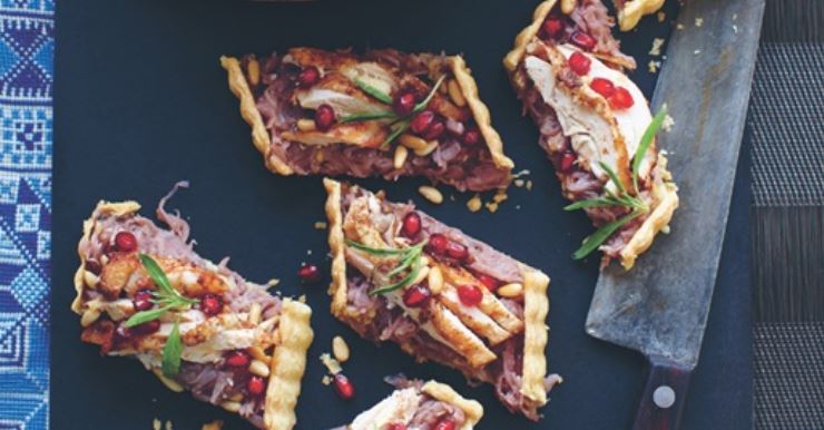 This tart is my version of mou’sakhan, a traditional Palestinian dish. The onions have to be cooked slowly in the best oil to caramelize. I like to serve my tart with a fresh thyme and arugula salad, and yogurt on the side. Lunch couldn’t be better.