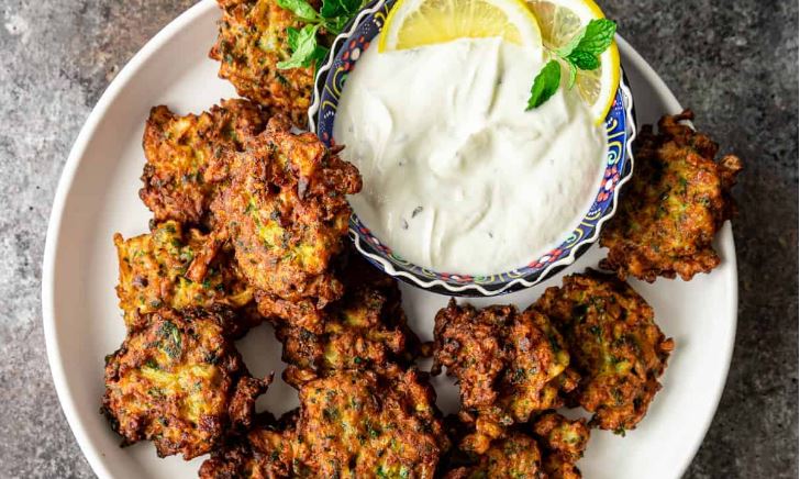 Cauliflower Fritters with Yogurt and Mint Dip