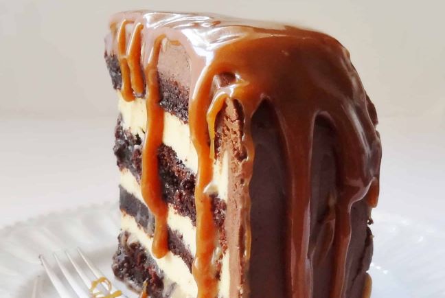 The Dark and White Cake with Mascarpone & Caramel Buttercream is a luxurious and indulgent dessert that combines the flavors of vanilla and chocolate cake