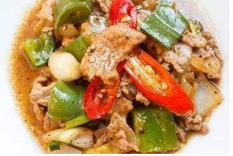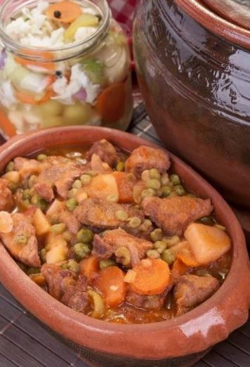 Serves: 8 INGREDIENTS: 6 cups green peas 1 pound cubed pork 2 tbsp olive oil or avocado oil 3 1/2 tbsp almond flour 2