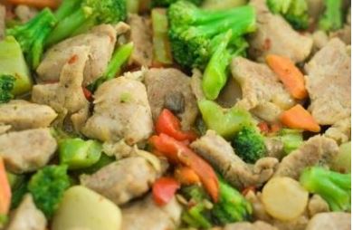 Serves :1 INGREDIENTS: 5 oz. Lean Pork Tenderloin, thinly sliced Bok Choy and/or Celery, chopped (use as much as you want) Fish Sauce, to