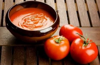 Serves: 6 INGREDIENTS: 4 tomatoes – peeled, seeded, and diced 4 cups tomato juice* 14 leaves fresh basil 1 cup coconut cream Salt, to