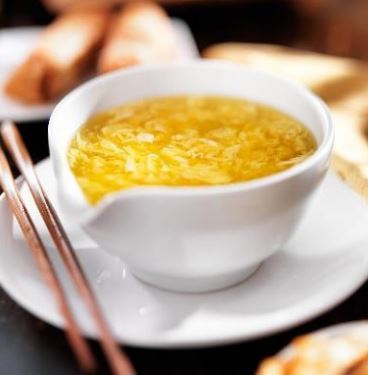 Serves :4-6 INGREDIENTS: 1 1/2 quarts chicken broth 2 tablespoons tapioca flour, mixed in 1/4 cup cold water 2 eggs, slightly beaten with a