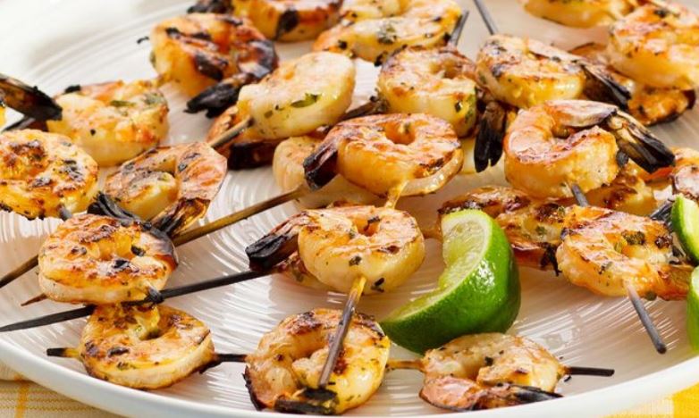 - Place the kebabs onto the grill. Cook for 2 to 3 minutes per side until the shrimp are firm and no longer gray.