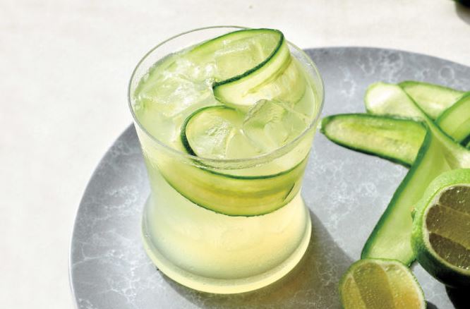 - Strain into 4 small glasses (martini ones if you have them), and garnish each glass with lime slices and the reserved cucumber slices. (Optional: Dip the reserved cucumber slices in salt before using them as a garnish.) Serve.