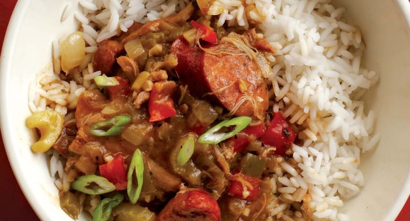 This South Louisiana favorite comes in many versions; this one calls for sausage and chicken in a broth thickened with filé powder.