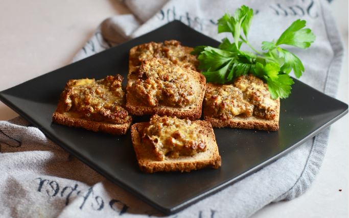 - Place the prepared snack rye bread slices with the mixture on the baking sheets.