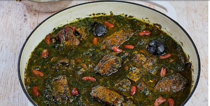 - Drain and rinse the beans. Add to the pot along with the fried sabzi, ground limes, and whole dried limes.