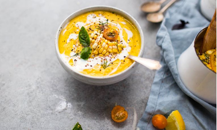Classic Tomato Gazpacho, with Sweet Corn and Mango Variations