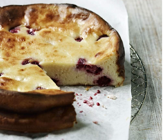 - Beat together the cream cheese and sugar. Add the beaten eggs bit by bit until combined. Add the flour and lemon zest, then fold through the raspberries.