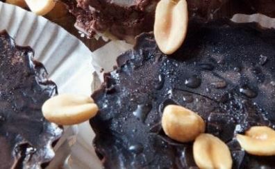 - Spoon a layer of the Superfoods chocolate mixture over the “peanut” butter filling in each muffin cup. Spread it evenly to cover the filling.