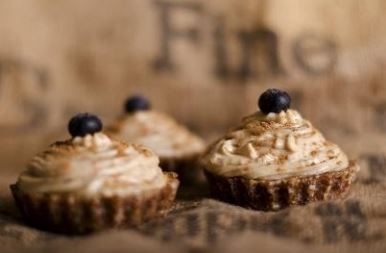 - Optionally, place some goji berries on top of the pudding layer in the tartlet crusts.