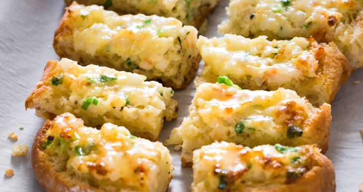 - Cut each slice of toast into three strips. Spread each strip with the shrimp mixture.