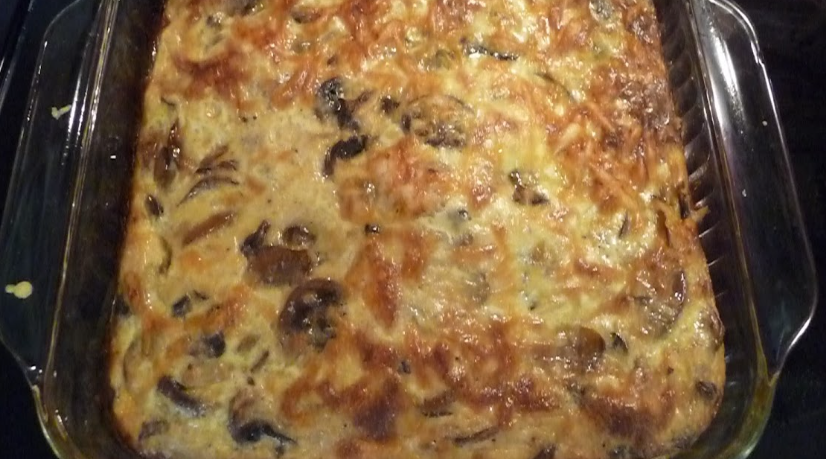 - Transfer the mixture to a large mixing bowl, and stir in the half-and-half, eggs, salt, pepper, and 2 cups of the cheese.