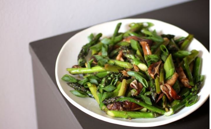 WHY THIS RECIPE WORKS Asparagus, like many vegetables, is a natural candidate for stir-frying because it cooks in a flash. The intense heat beautifully caramelizes it, while the short cooking time ensures that its crisp-tender bite is preserved. Starting with a hot skillet and then stirring the asparagus only occasionally during cooking allowed the asparagus to char before it overcooked, creating a natural sweetness that paired perfectly with the potent Asian-inspired sauce. Thinly sliced shiitake mushrooms complemented the fresh-flavored asparagus and added some heft. To ensure that the asparagus and mushrooms cooked evenly, we added a bit of water, creating a small amount of steam that cooked the vegetables through before evaporating and leaving behind a flavorful, clingy glaze. Look for asparagus spears no thicker than ½ inch. Serve as a side dish, or over rice.