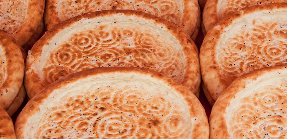 Uzbeks are famous for their bread and you see it all over the markets, different types with wonderful patterns stamped into them using an implement called a chekish (hammer in Arabic), which is a type of wooden mallet spiked with sharp metal nails arranged in different patterns. The chekish serves two purposes—one is to make lovely patterns on the bread and the other is to puncture the dough so it doesn’t puff up while baking. It is not so easy to find chekish in the West, but you can use a fork or a sharp skewer to make the pattern of your choice. Uzbeks, along with most Muslims, consider bread sacred and they have lovely customs to show their reverence for bread, such as placing it under the head of a newborn baby to wish him or her a long, healthy life or in between the legs of a child taking her first steps to bless her endeavor. You find many types of bread in Uzbekistan, both plain and filled. This recipe is for the most common and plainest.